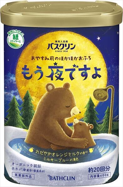 【まとめ買い】バスクリン もう夜ですよ おだやかオレンジミルクの香り 600g 【 バスクリン 】 【 入浴剤 】【HRM-20500842-1】×15点セット