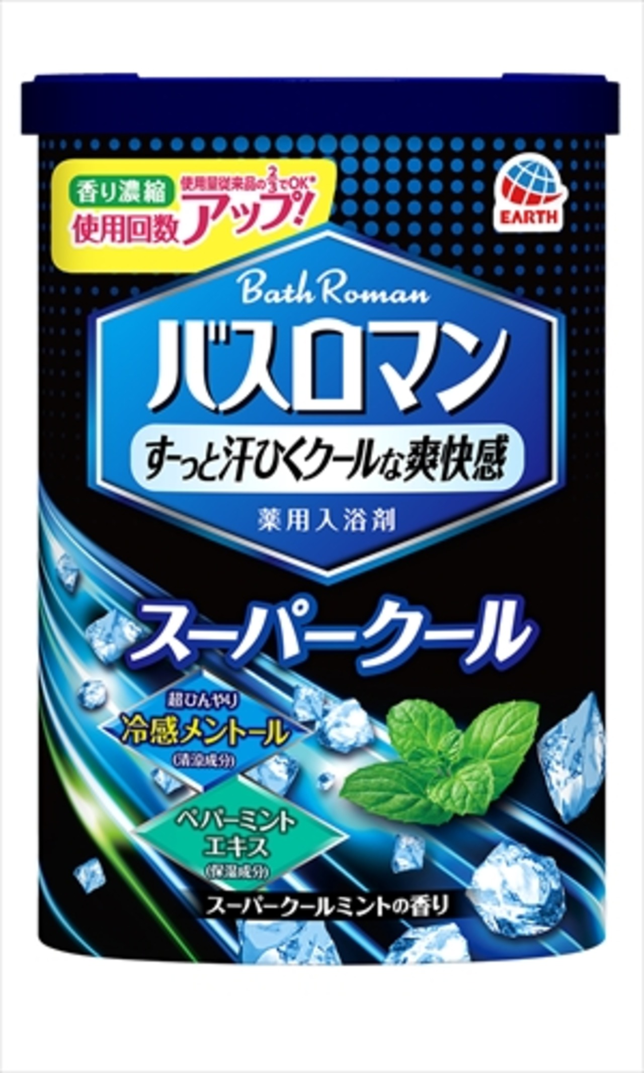 ■【説明】:汗でベタつくお肌をひんやり爽快にします。つきぬける清涼感のある、スーパークールの香りです。クールミントブルーのお湯(透明)です。