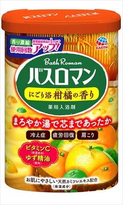 ■【説明】:バスロマンにごり浴柑橘の香り。ギュッと濃縮した香りが瞬く間に広がり、まろやか湯で芯まであったか。温泉成分(硫酸ナトリウム)を高配合。湯上がり後もポカポカ感と温まりが続く。保湿成分:ショウキョウエキス、ビタミンC、お肌にやさしい天然カミツレエキスを配合。ゆず精油(香料)配合。赤ちゃん(生後3ヵ月以上)と一緒に入浴する時も使える。約30回分