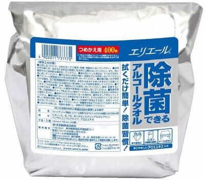 ■【商品名】: 【まとめ買い】エリエール除菌アルコールタオル詰替400枚×8点セット