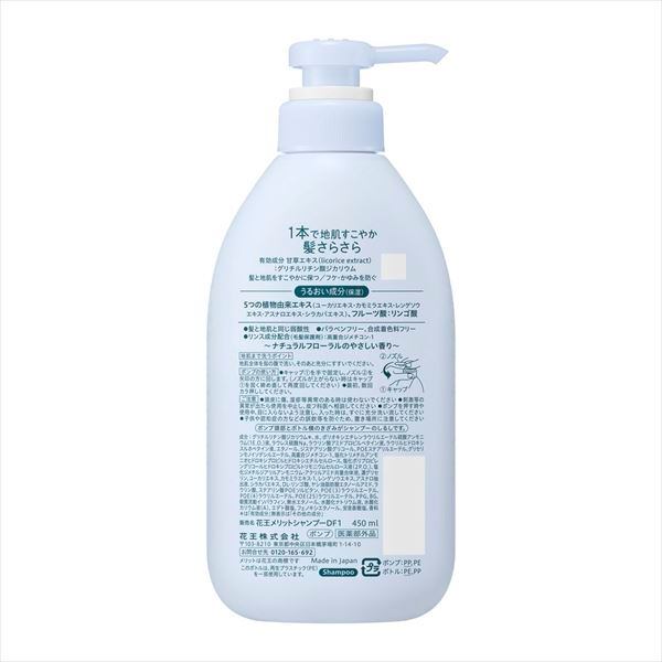 ■【説明】:1本で地肌すこやか、髪さらさら。●うるおい成分:5つの植物由来エキス(ユーカリ・カモミラ・レンゲソウ・アスナロ・シラカバ)、フルーツ酸(リンゴ酸)配合●髪と地肌と同じ弱酸性●パラベンフリー・合成着色料フリー●リンス成分配合(毛髪保護剤):高重合ジメチコンー1●有効成分 甘草エキス(グリチルリチン酸ジカリウム)●髪と地肌をすこやかに保つ●フケ・かゆみを防ぐ(医薬部外品)