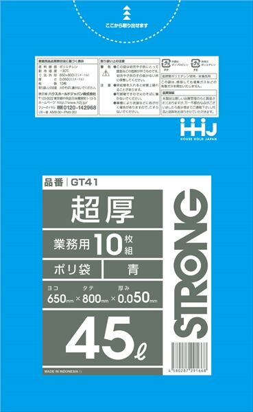 【まとめ買い】GT41 ポリ袋45L青 10枚 0.05 【 ハウスホールドジャパン 】 【 ゴミ袋・ポリ袋 】【HRM-20615760-1】×30点セット