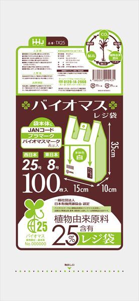 ■【説明】:TX25バイオマス配合25%レジ袋25号白100枚