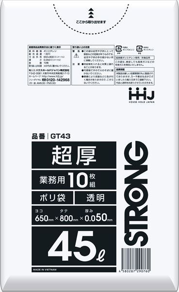 ■【説明】:GT43 ポリ袋45L透明 10枚 0.05