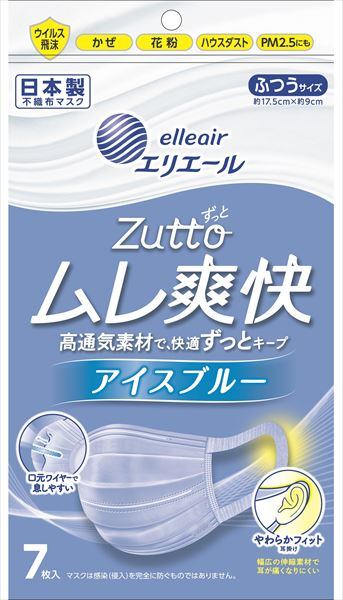 【まとめ買い】エリエール Zutto ムレ爽快 アイズブルー ふつうサイズ 7枚 【 大王製紙 】 【 マスク 】【HRM-22521597-1】×80点セット