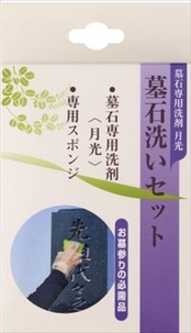 ■【説明】:お墓のお掃除に便利な墓石専用洗剤と専用スポンジのセット。