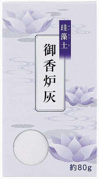 ■【説明】:珪藻土は 天然の素材で、目に見えない小さな穴が無数に開いており、空気の通り道となる為、お線香の燃え残りが少なく、また、他原料の灰と比較して粒子が細かいのでお線香を立てやすいという利点があります。